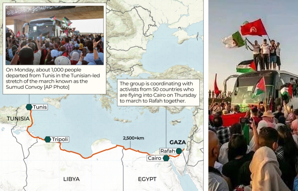The Tunisian Resilience Convoy, yang berangkat pada tanggal 9 Juni, melibatkan lebih dari 7.000 orang dari Tunisia, Aljazair, Maroko, dan Libya, yang membawa pasokan medis dan makanan ke Gaza. Konvoi yang didukung oleh berbagai organisasi ini, bermaksud untuk mencapai perbatasan Gaza pada tanggal 15 Juni.