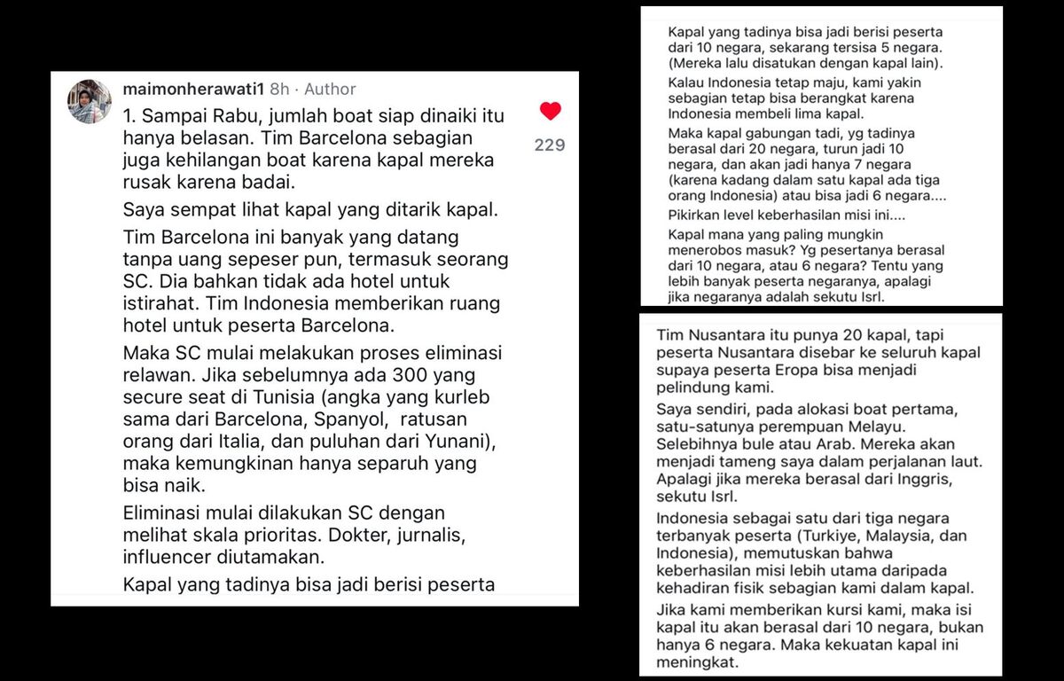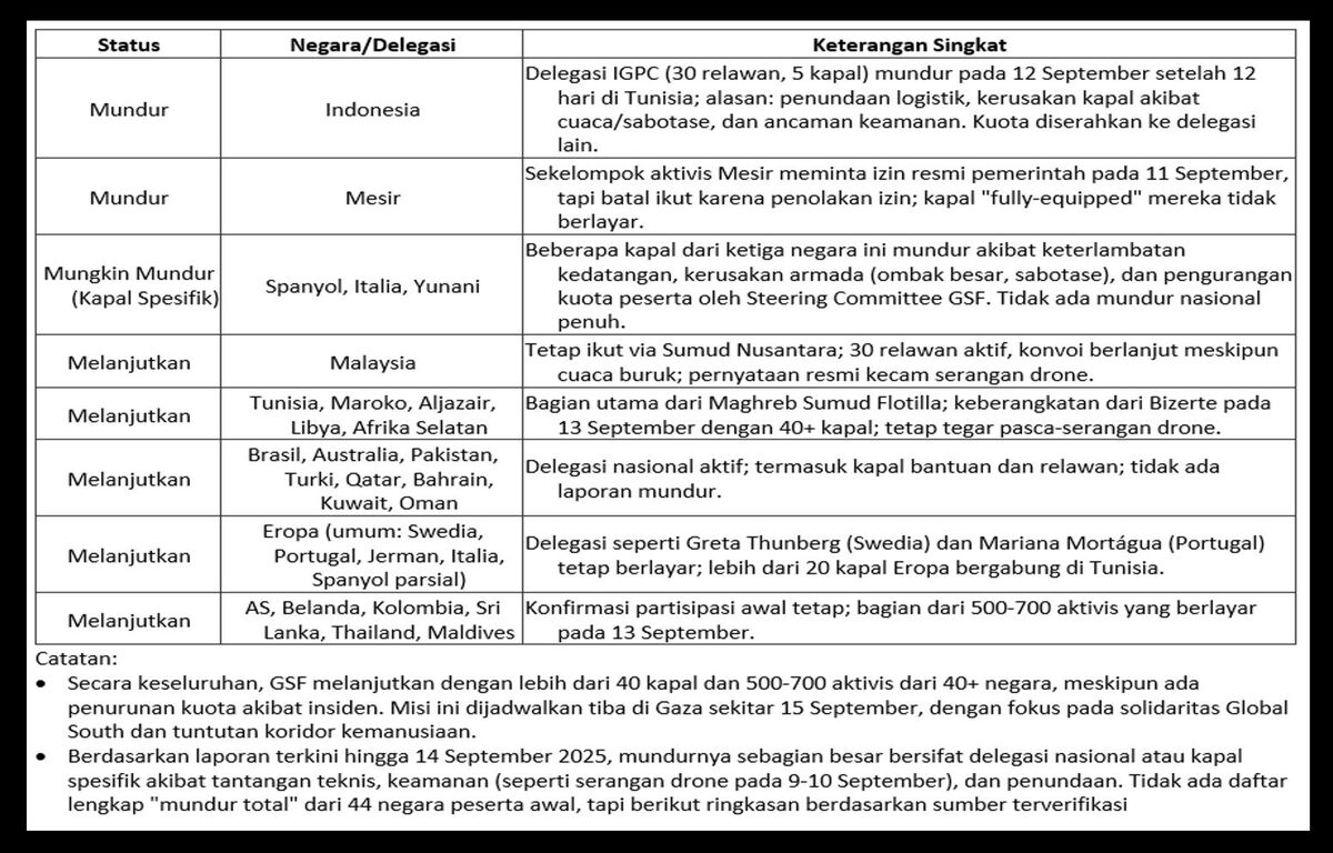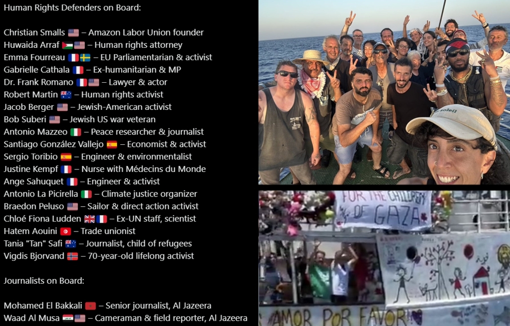 Thunberg, yang dikenal sebagai aktivis iklim, menegaskan bahwa partisipasinya adalah bagian dari kewajiban moral untuk melawan ketidakadilan, dengan menyatakan bahwa 'silence is complicity' (bahwa diam itu ikut terlibat} dan bahwa misi ini adalah bentuk perlawanan tanpa kekerasan terhadap blokade dan krisis di Gaza.