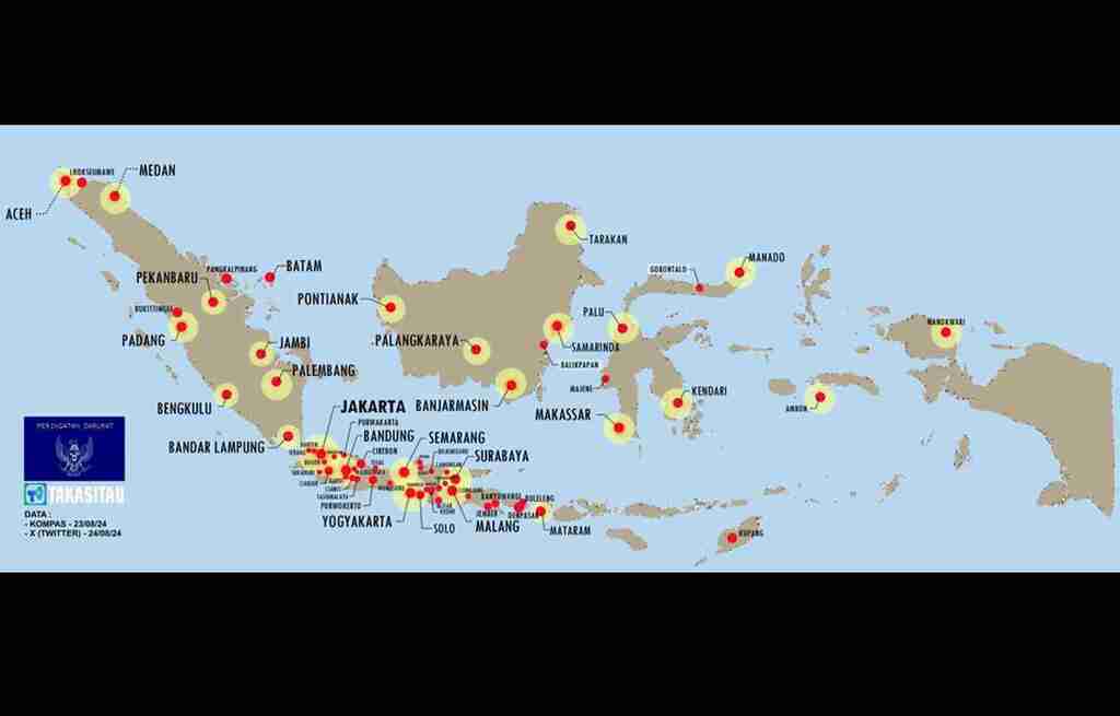 - Sebaran lokasi demo sudah merambah ke berbagai kota (lihat peta sampai dengan per 24/08/24)