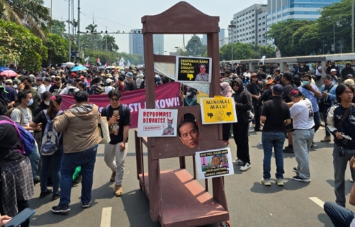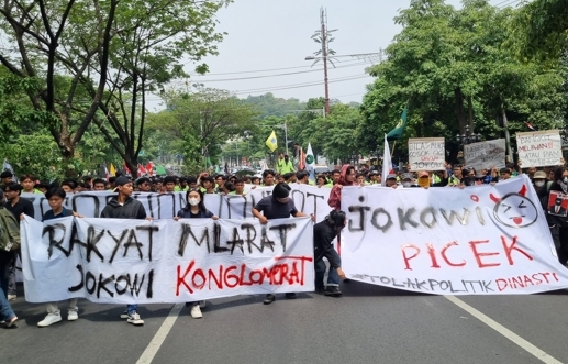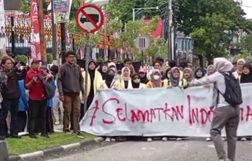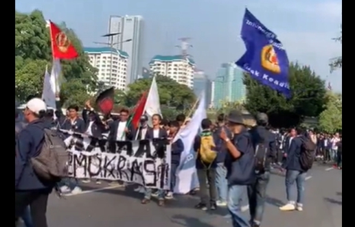 - Sejumlah mahasiswa menamakan diri "Indonesia Melawan" menggelar aksi demonstrasi dengan tuntutan agar Presiden Joko Widodo diadili. Aksi ini berlangsung di Gedung DPRD Solo, dengan mahasiswa membawa spanduk dan menyuarakan aspirasi mereka. @CNNIDdaily