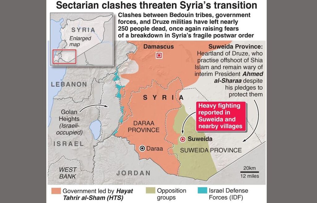 Clashes between Druze & Bedouins turned intense. Syria backed Bedouins, Israel struck Damascus & 160 sites claiming to protect Druze.