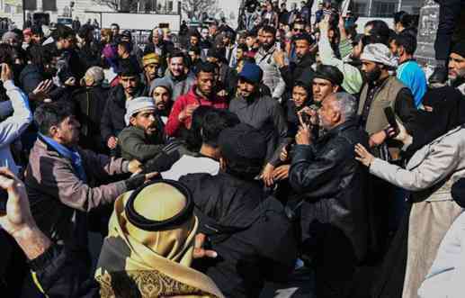 Pertengkaran terjadi antara pengunjuk rasa dan yang lainnya dari demonstrasi tandingan di alun-alun al-Marjeh di Damaskus pada 9 Maret 2024, AFP. (RUDAW) - (awal masakre yang menewaskan orang dari kelompok Alawit, pen)