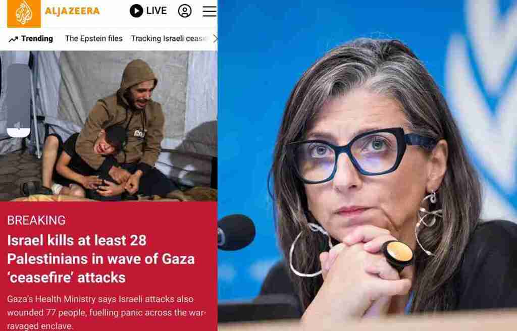 Hari-hari gencatan senjata (menjadi hal) biasa di Gaza: Israel membunuh 28 warga Palestina di tengah diamnya negara-negara yang baru saja memberikan suara untuk rencana 'perdamaian'. Penderitaan rakyat Palestina yang tiada henti dan politik jahat di sekitarnya, merupakan aib zaman kita. Francesca Albanese, UN Special Rapporteur oPt @FranceskAlbs - 20 Nov 2025.