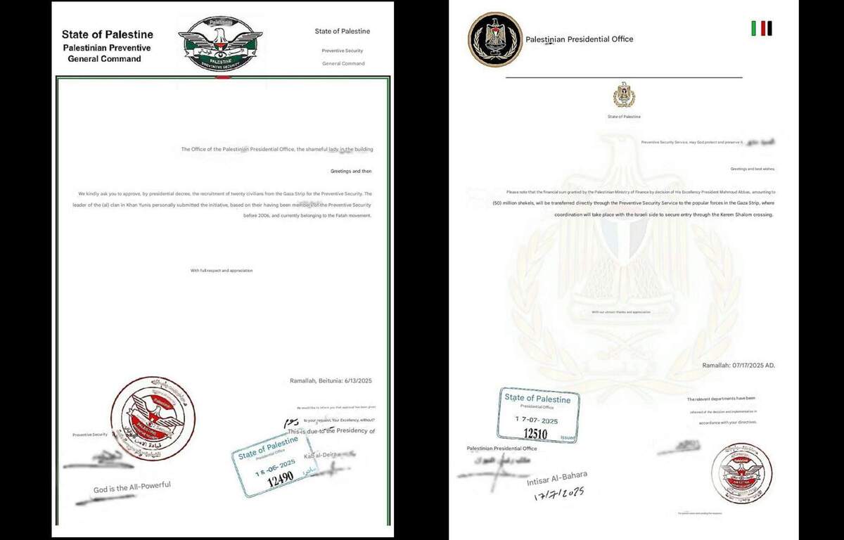 17/07/2025 – Kantor Kepresidenan memerintahkan Keamanan Preventif untuk mengirimkan uang ini kepada “pasukan rakyat di Jalur Gaza” berkoordinasi dengan pihak Israel melalui perlintasan Kerem Abu Salem.