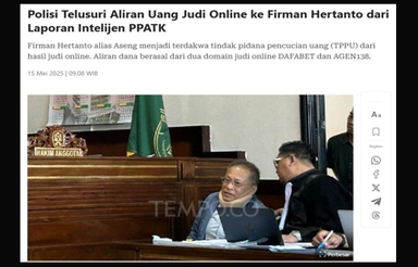 11. Tempo.co: Polisi Telusuri Aliran Uang Judi Online ke Firman Hertanto dari Laporan Intelijen PPATK