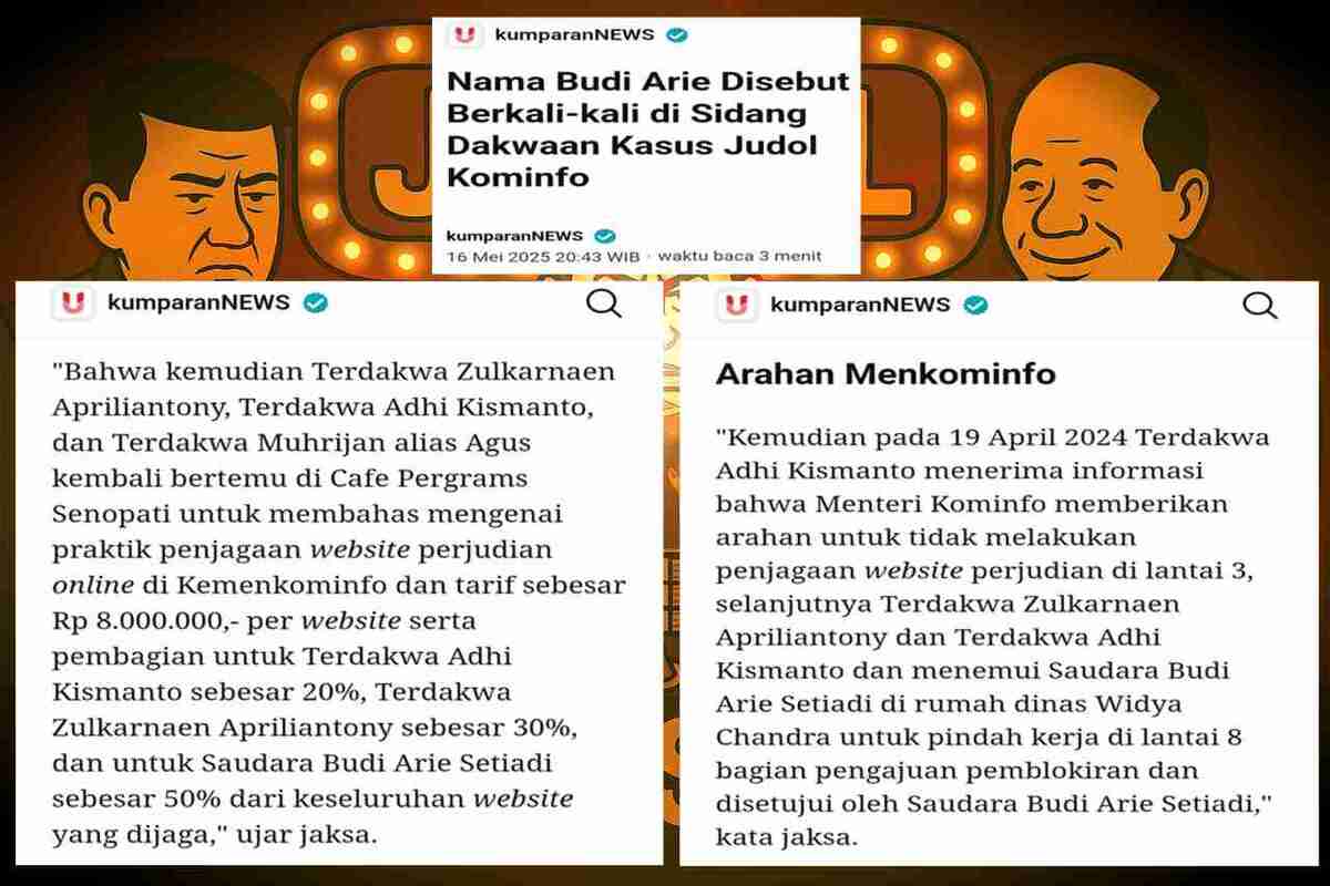 Nama Budi Arie disebut di pemeriksaan/penyidikan, tertuang di BAP, ditulis di Surat Dakwaan dan disebut dalam surat dakwaan kasus suap pengamanan situs judi online (judol) yang dibacakan pada sidang perdana di Pengadilan Negeri Jakarta Selatan, Rabu (14/5/2025)