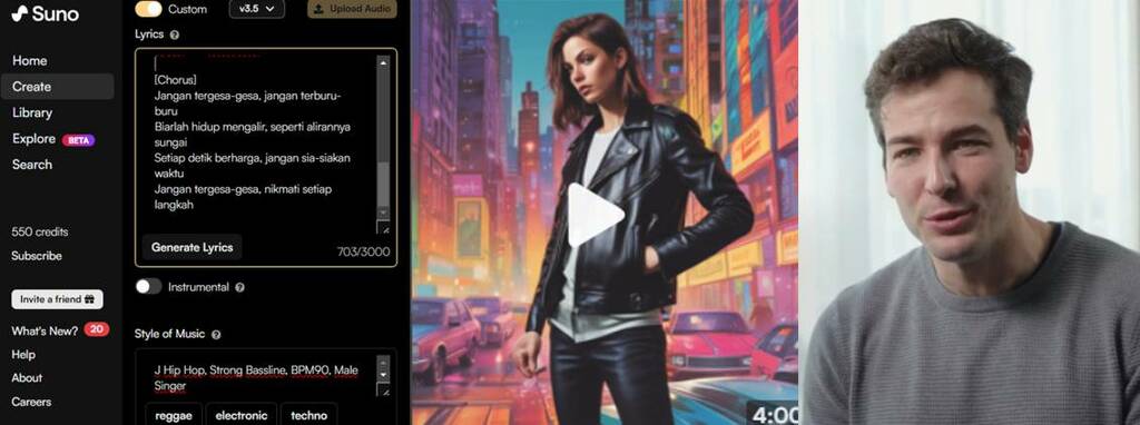 Sepanjang tahun lalu saja, AI generatif telah membuat langkah besar dalam menghasilkan teks, gambar (melalui layanan seperti Midjourney), dan bahkan video yang dapat dipercaya, terutama dengan alat Sora baru dari OpenAI. Tetapi audio, khususnya musik, masih tertinggal. Sepertinya Suno sedang memecahkan kode untuk musik AI, dan ambisi para pendirinya hampir tidak terbatas - mereka membayangkan dunia pembuatan musik yang sangat demokratis. Dari anda semua ke anda semua. Dan genre musik pun sangatlah beragam, kecuali musik tradisional yang belum digali. Dipadukan dengan Chat-GPT dalam menggubah lyric lagu, menjadikan Suno.ai tidak ada taranya.